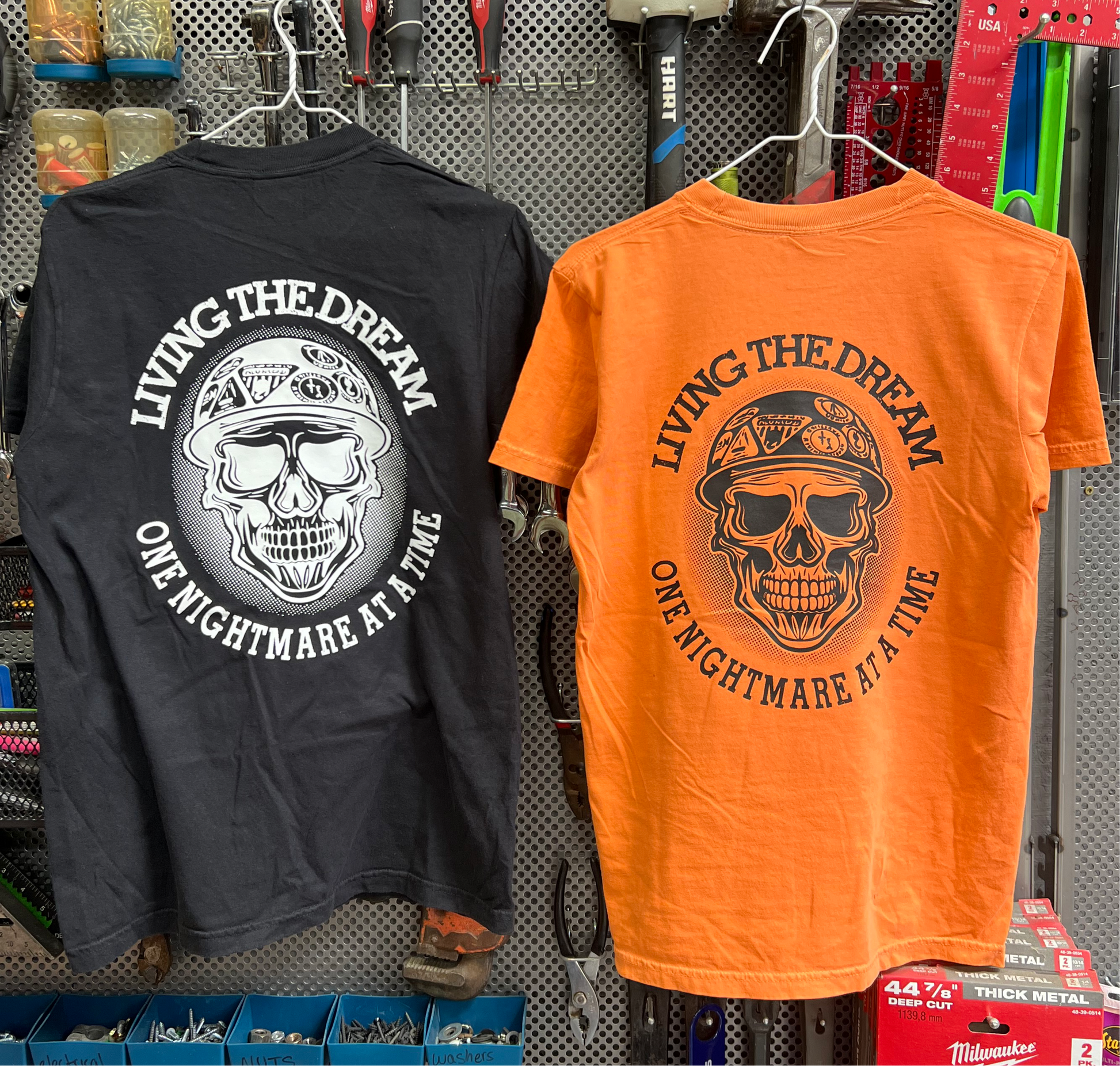 The good ol saying "Livin' the dream, One nightmare at a time!" Pocket T shirts on small through 3X will be on a heavier weight cotton T shirt. Fits like a Carhartt. High vis non pocket shirts small through 3x are on a 50/50 shirt. All 4x-5x shirts are NOT POCKET and on a 50/50 shirt or 60/40 depending on color.